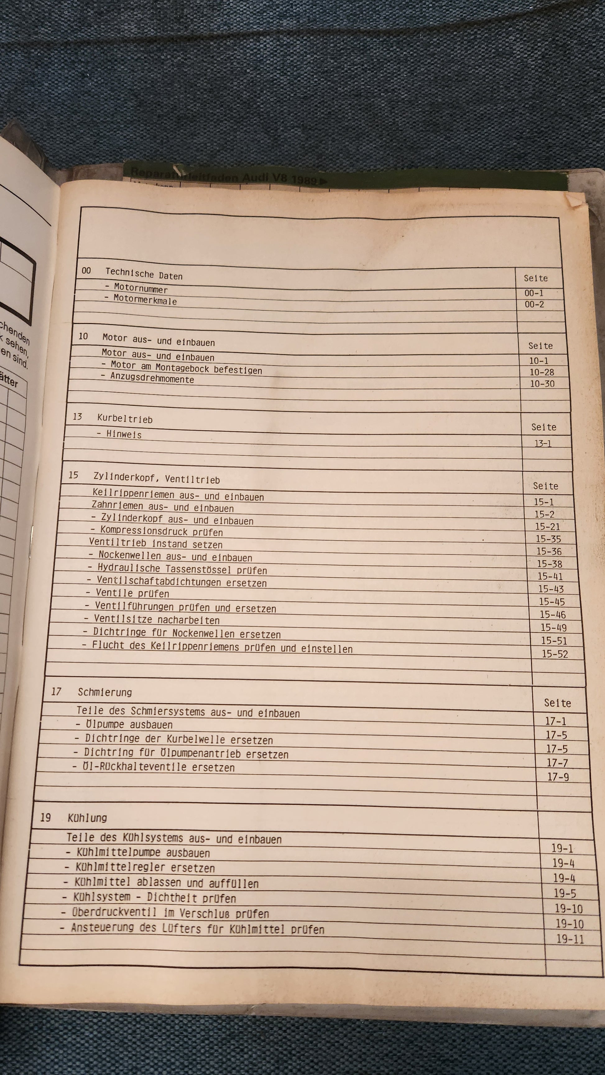 Audi V8 PT ABH Motor Reparaturleitfaden Werkstattbuch
