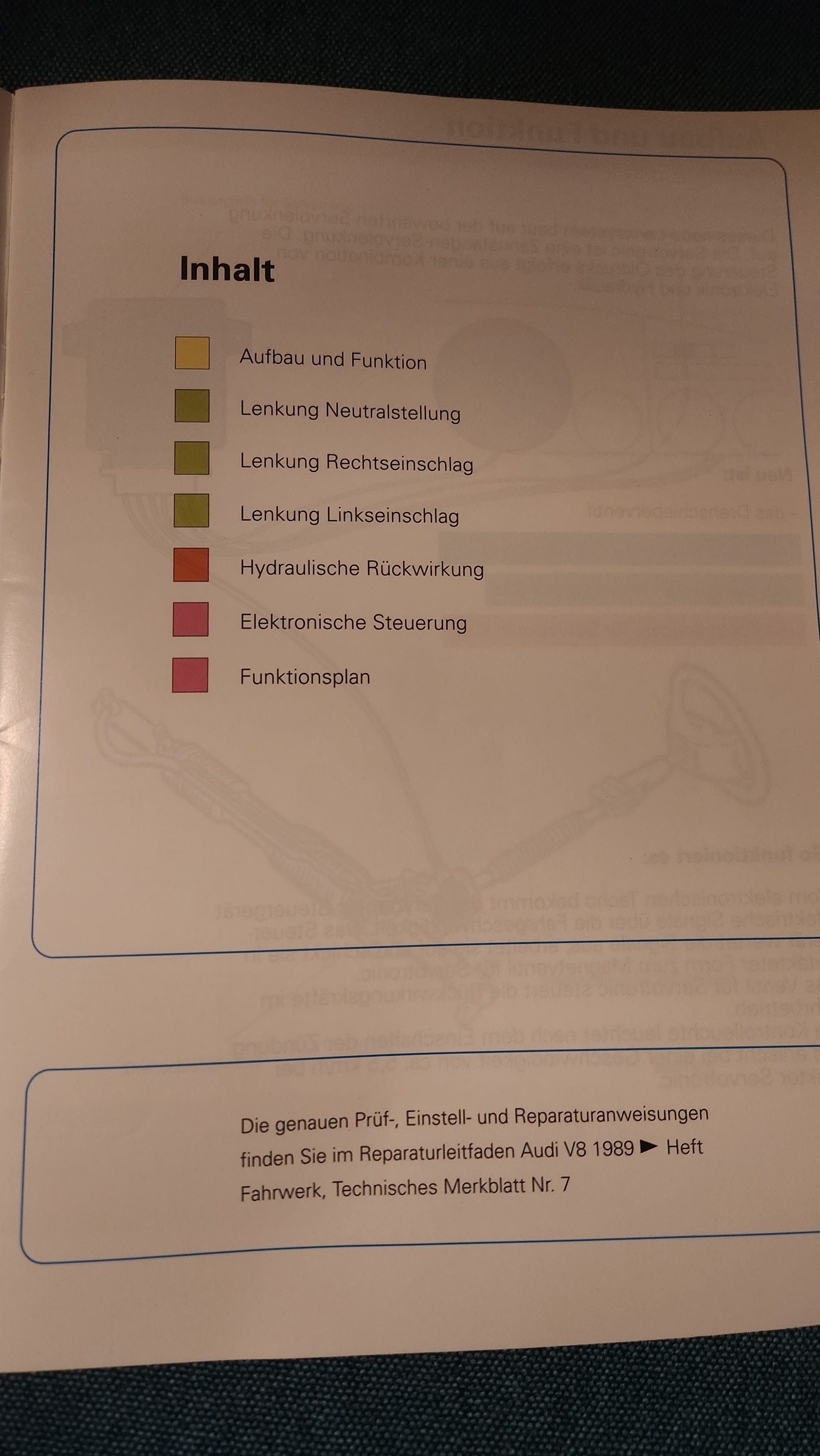 Geschwindigkeitsabhängig gesteuerte Servolenkung Servotronic Audi V8 Selbststudienpogramm Nr. 119 Werkstattbuch Reparaturleitfaden