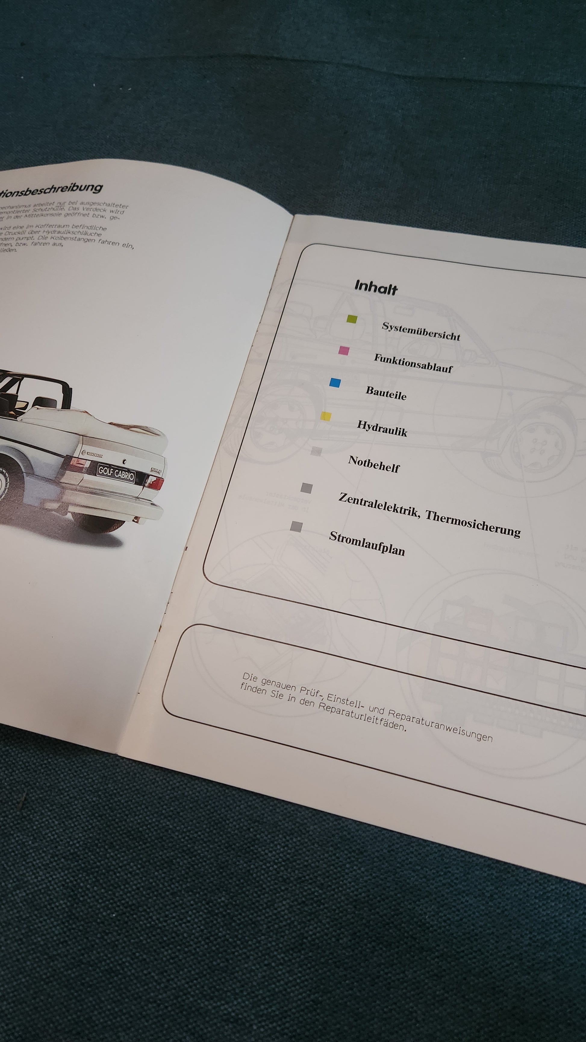 Golf 1 Cabriolet -elektrisch-hydraulische Verdeckbetätigung Konstruktion und Funktion Selbststudienprogramm Nr. 118 Reparaturleitfaden Werkstattbuch