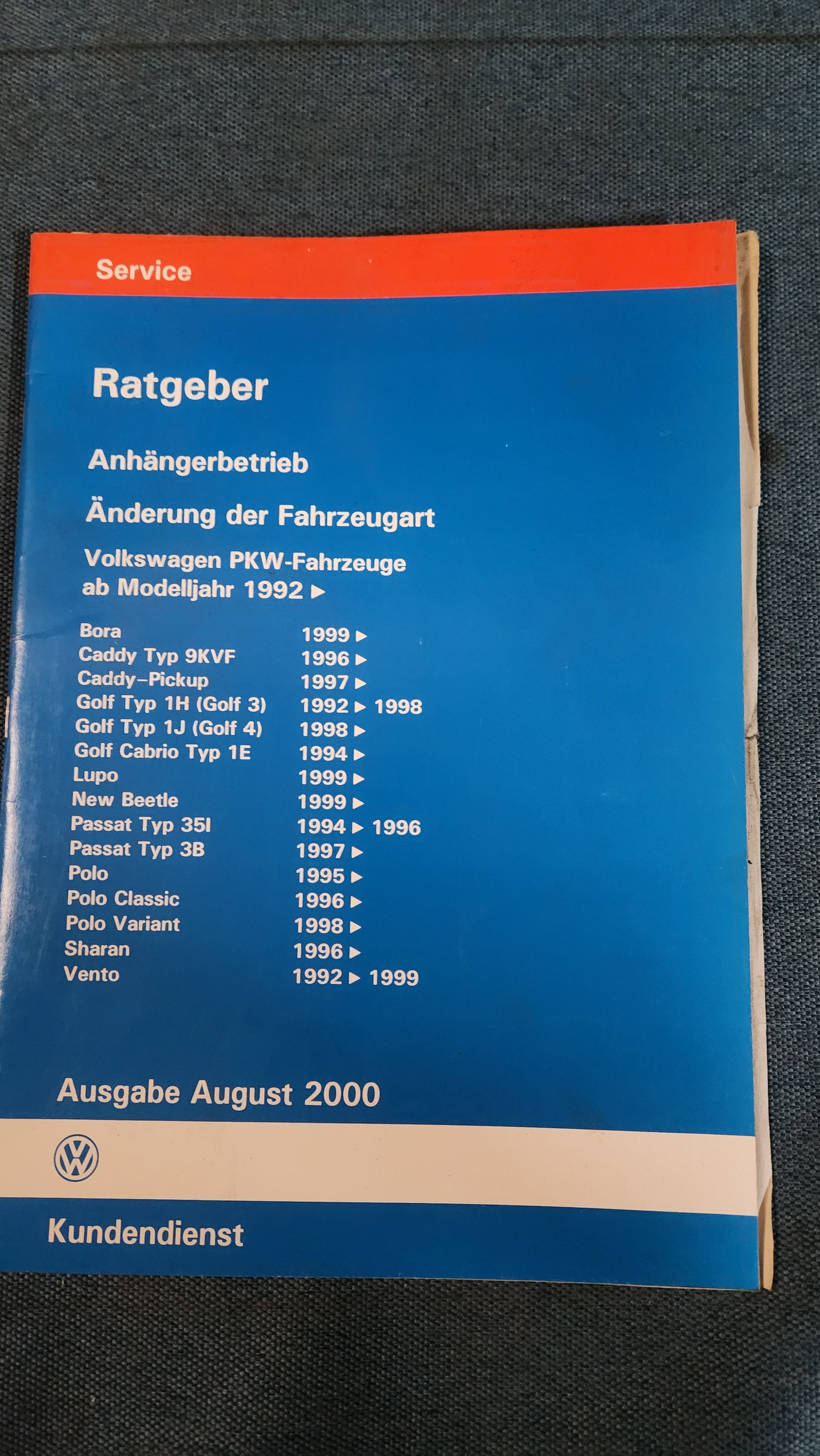 Ratgeber Anhängerbetrieb Bora Golf 3/4 Caddy 9KV Passat B3 35I 3B Polo 6N Vento Werkstattbuch Reparaturleitfaden